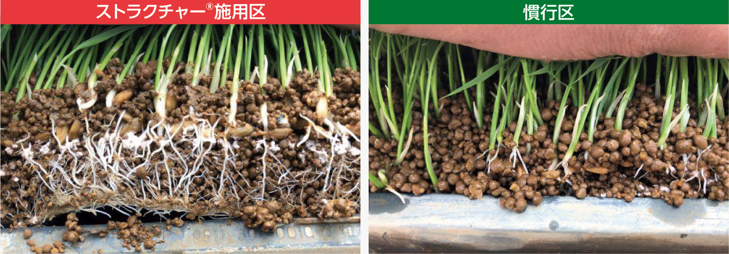 三重県生産者様葉色は大きく変わらないが、根張りは無処理区と比較して良く感じ、安定している印象を受ける。