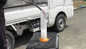 500mℓが約2秒で散布器具から吐出することを確認定植後の灌水と殺虫剤処理、2つの作業が1回で済むから、
