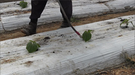 「今までは、腰をかがめて株元に粒剤を落としていくっていう作業が、結構腰の負担になっていてきつかったね。この時期は陽が当たるとハウスの温度がかなり上がるので、長時間中にいるのは体力的にも厳しかった。妻と二人の作業で10aあたり30~40分。1人でやると1時間以上かかってたね」と宮越さん。