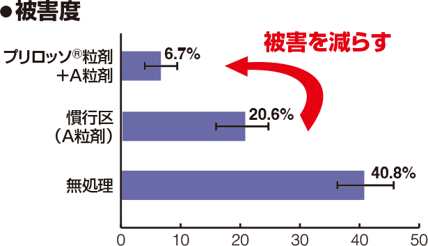 - プリロッソ®粒剤(6kg/10a 播種時播溝土壌混和、地表面から深さ5cm付近)